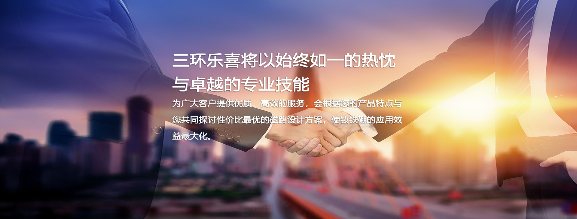 三環(huán)樂(lè)喜新材料有限公司,成立于1990年,控股股東中科三環(huán)(股票代碼:000970)為中國(guó)稀土永磁材料產(chǎn)業(yè)的代表企業(yè)、全球特大的釹鐵硼永磁體制造商之一。自成立以來(lái),公司一直致力于研發(fā)、生產(chǎn)、銷售中、高品質(zhì)燒結(jié)釹鐵硼,年生產(chǎn)能力超過(guò)6000噸,是中科三環(huán)的重要生產(chǎn)基地。